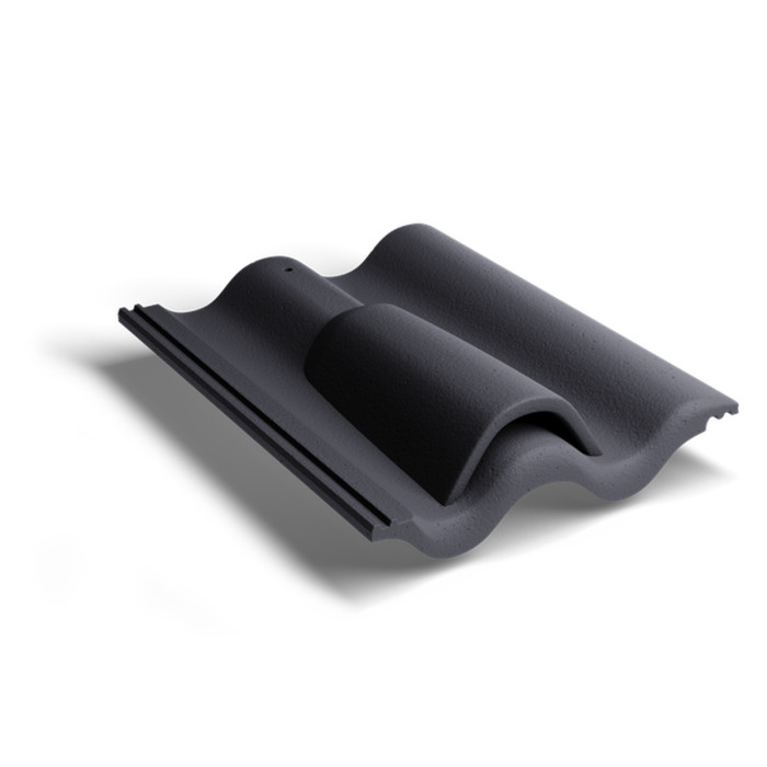 Боковая цементно-песчаная черепица правая Braas Доппель-С графит