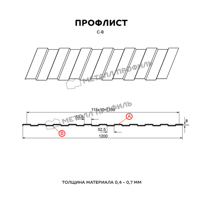 Профлист Металл Профиль С-8 0,7 Полиэстер RAL 1015 Светлая слоновая кость | A
